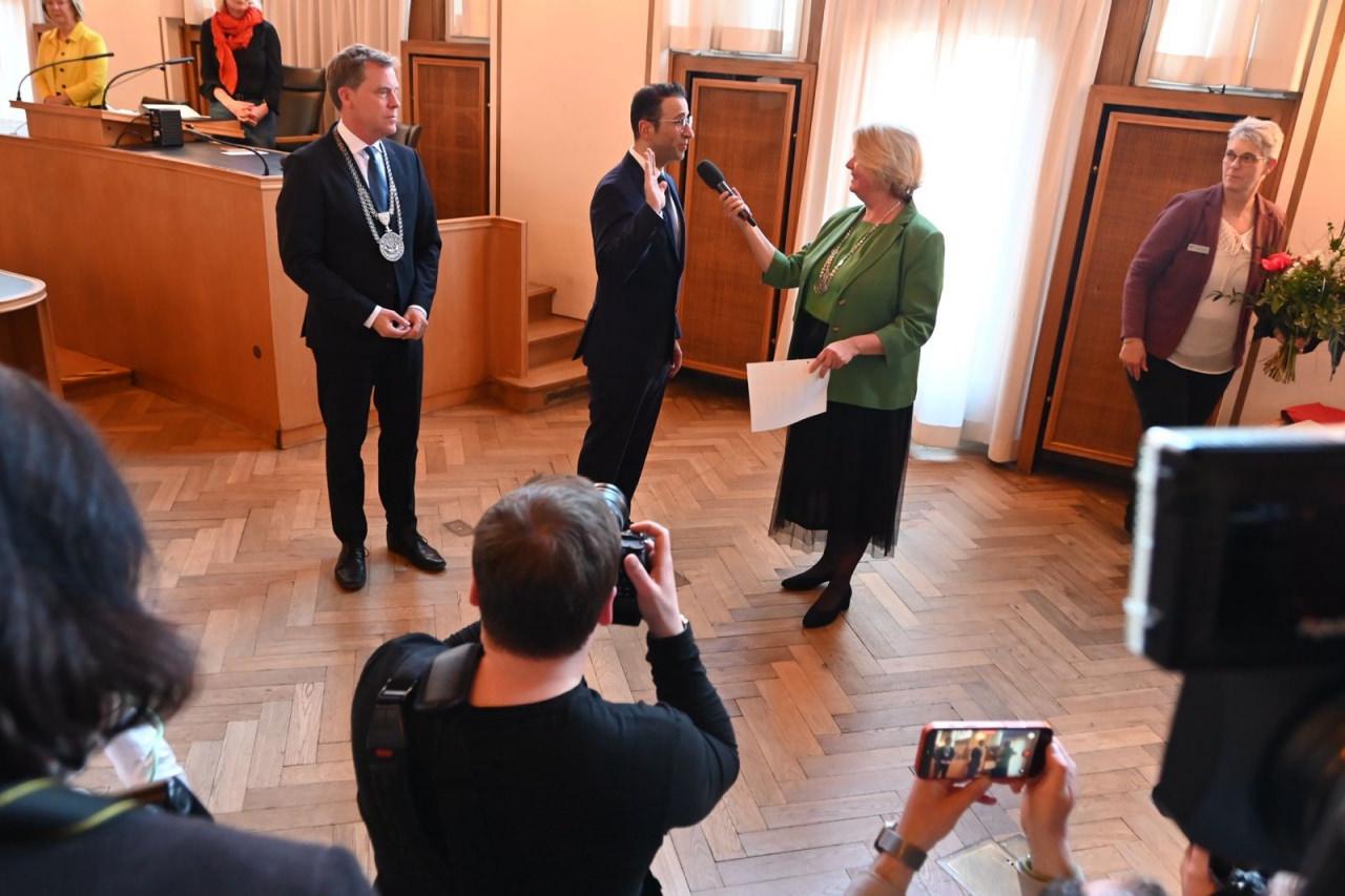 Dr. Samet Yılmaz, Kiel’de düzenlenen merasimle yemin ederek misyona başladı; böylelikle kentin birinci göçmen kökenli belediye başkanı olurken, “birlikte yönetim” ve “yeni başlangıç” bildirisi verdi.