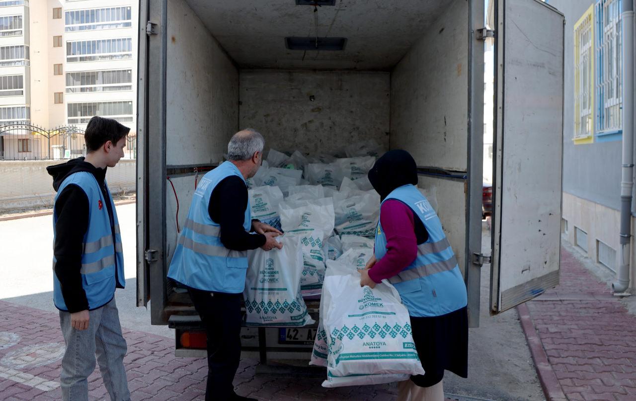 Karatay ilçesinde gerçekleştirilen yardım çalışmaları kapsamında da gereksinim sahibi ailelere besin takviyesi sağlandı. Hazırlanan yardım kolileri 208 aileye ulaştırıldı.