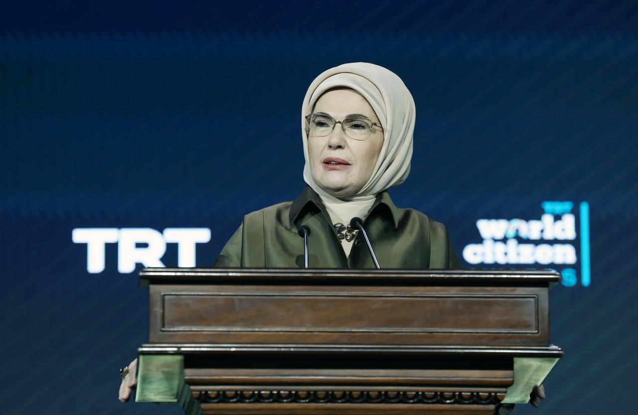 Emine Erdoğan, “Pozitif Değişime İlham Olmak” prensibiyle düzenlenen “TRT World Citizen Awards” programında yaptığı konuşmada, insaniyetin bir lisanı, rengi ve coğrafyası olmadığını hatırlatan çok özel bir buluşma için bir ortada olduklarını söyledi. Erdoğan, global krizlere ve Gazze’deki insani drama dikkati çekerek, “İnsanlık gırtlağına kadar acıya batmış durumda.” dedi.